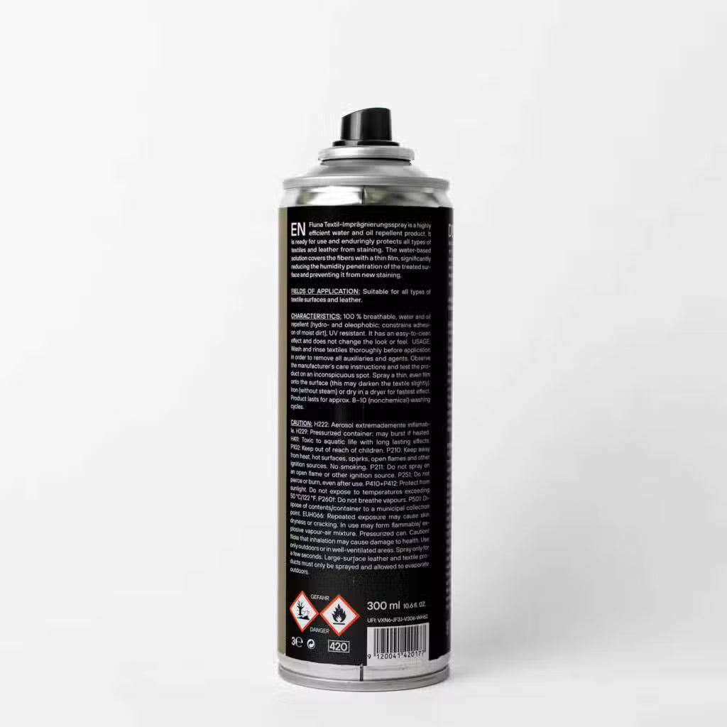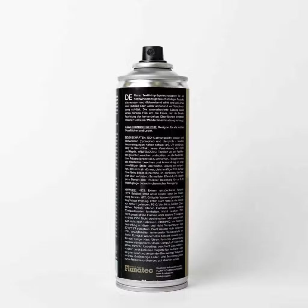 Fluna Textilimprägnierung hält Ihre Kleidung trocken, schützt vor Schmutz und bewahrt die Atmungsaktivität. Einfach aufsprühen, losziehen, trocken bleiben!