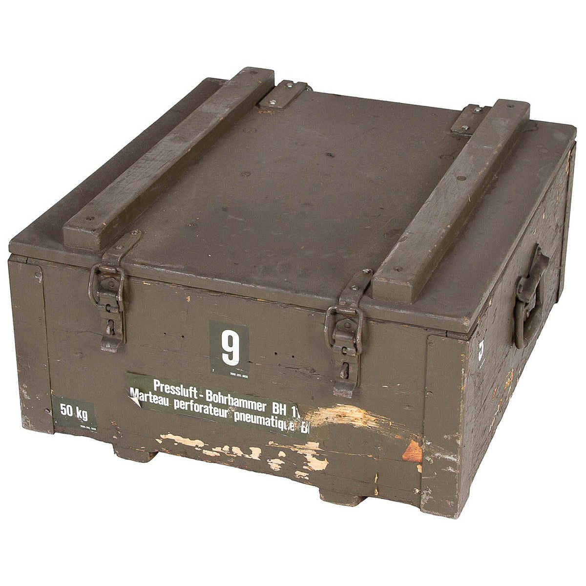 Schweiz. Pressluft-Bohrhammer,Holzkiste, mit Zubehör, gebr.