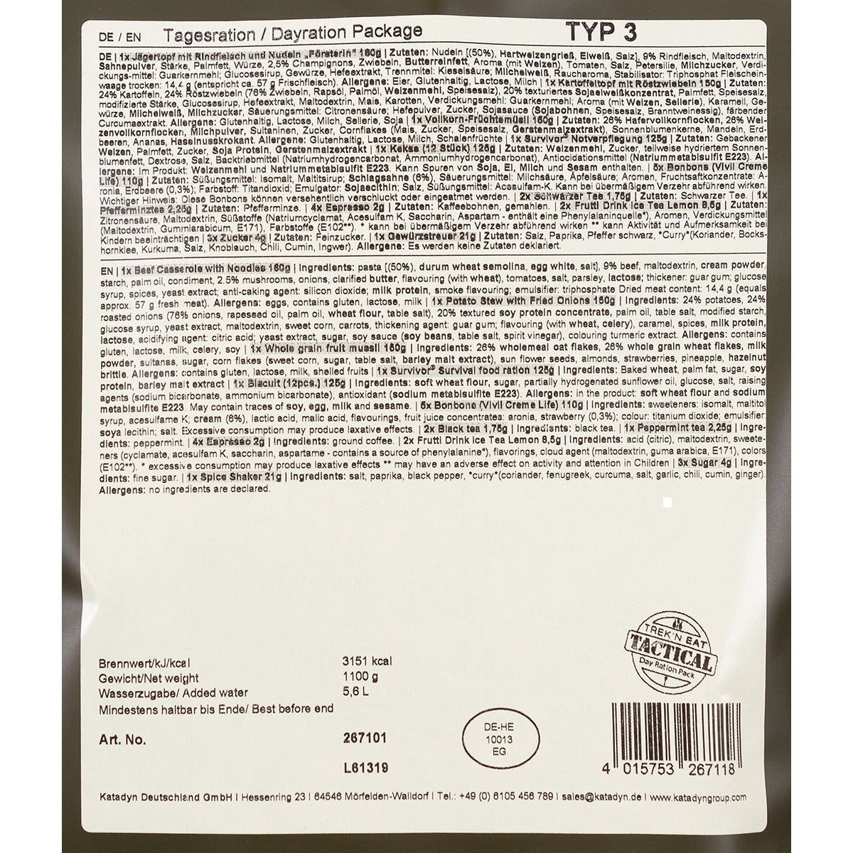 Trek 'n Eat, Tagesration,Typ III, 7% Mwst.